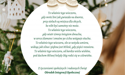 To właśnie tego wieczoru, gdy mróz lśni jak gwiazda na dworze, przy stołach są miejsca dla obcych, bo nikt być samotny nie może. To właśnie tego wieczoru, gdy wiatr zimny śniegiem dmucha, w serca... |